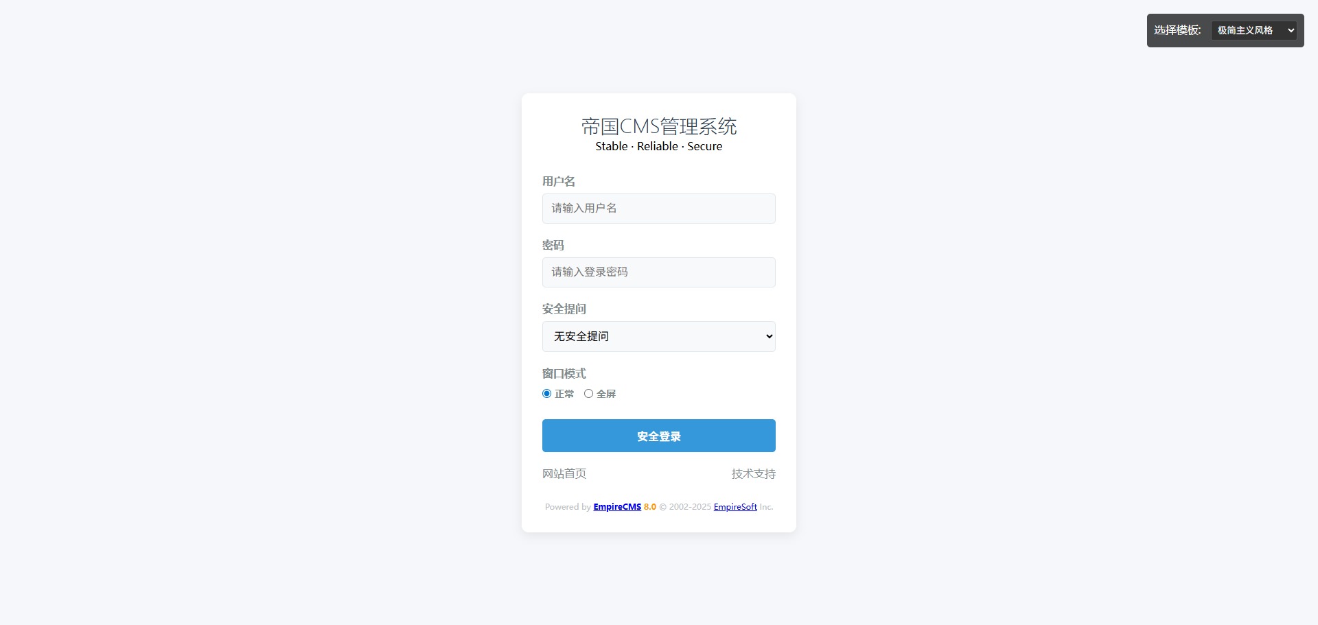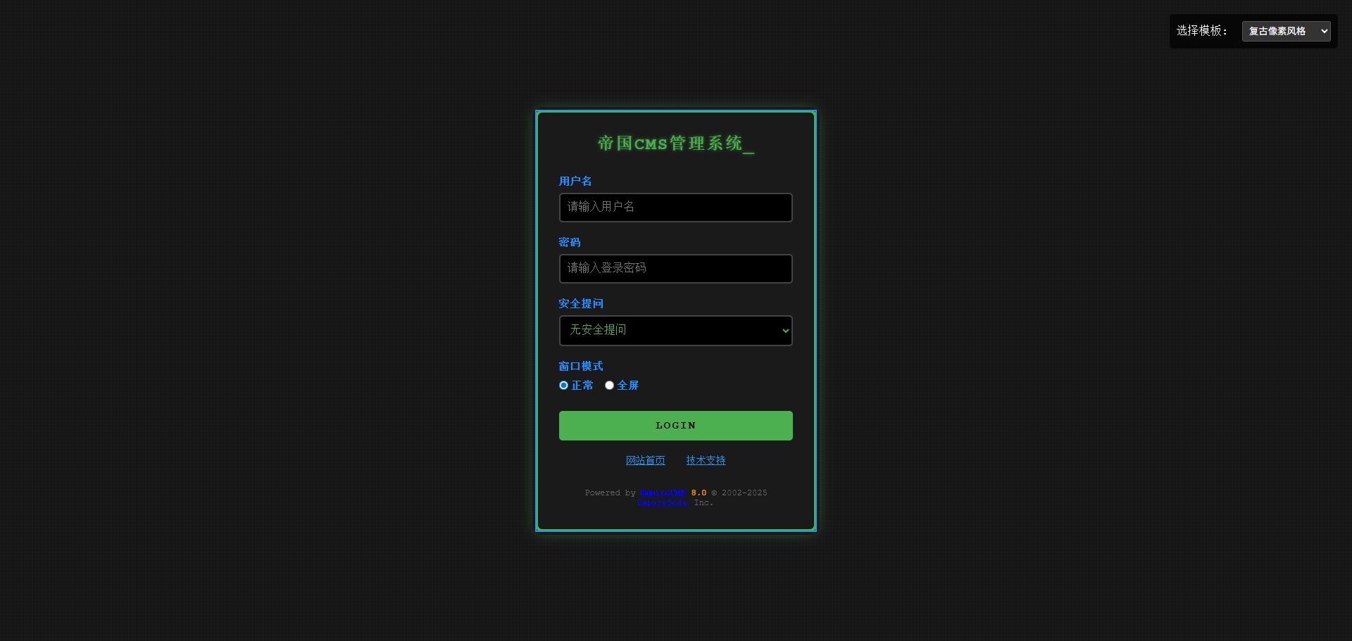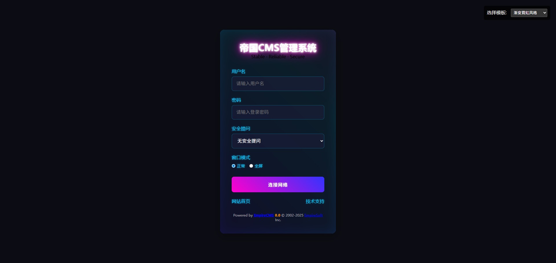 分享几套帝国CMS8.0后台登录模板,代码全部AI生成,亲测可用